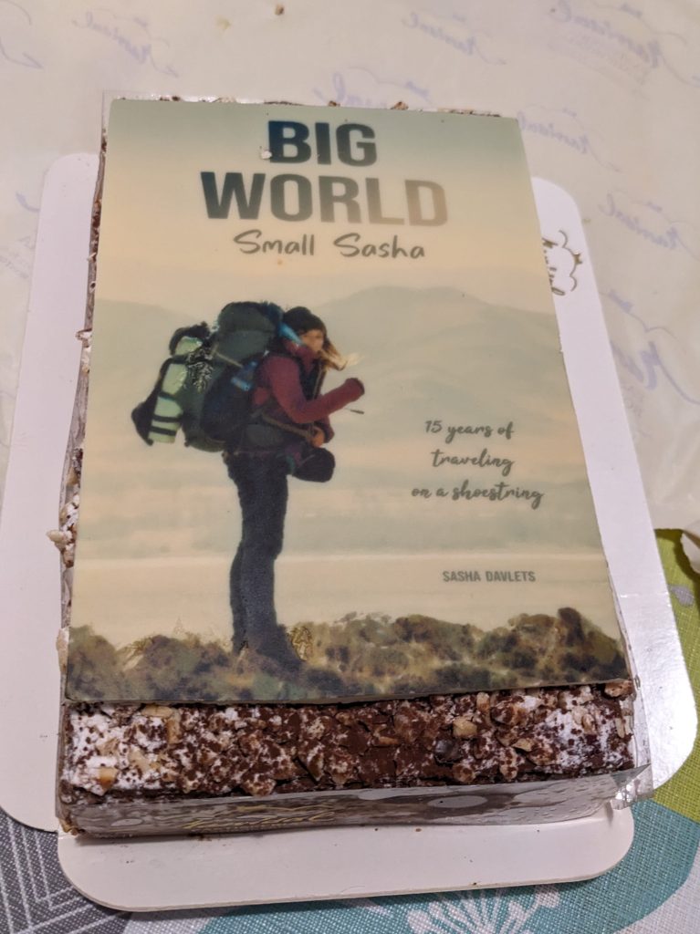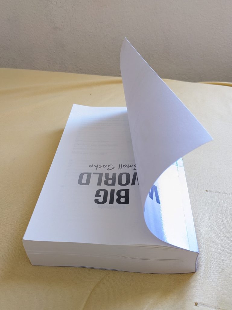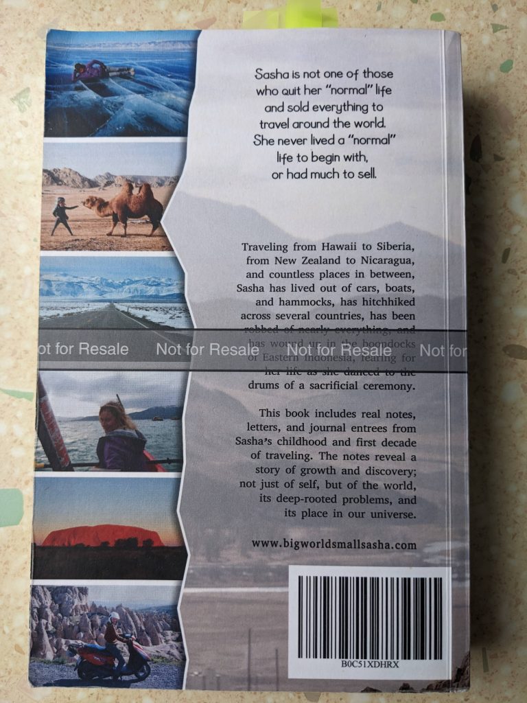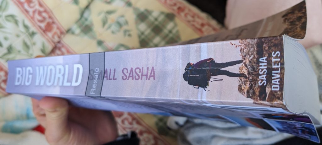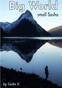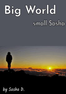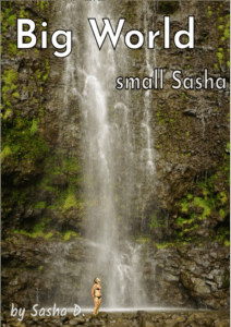 I probably should have put a comma in the title (“Big World, Small Sasha”), but I’m not sure this designer would have understood the idea either way. I also wanted a more humble cover, not one that screamed “BIG WORLD SMALL” and “15 YEARS.” Anyway, I only paid $20 so I couldn’t have expected much. I couldn’t afford any more than that so I looked no further.