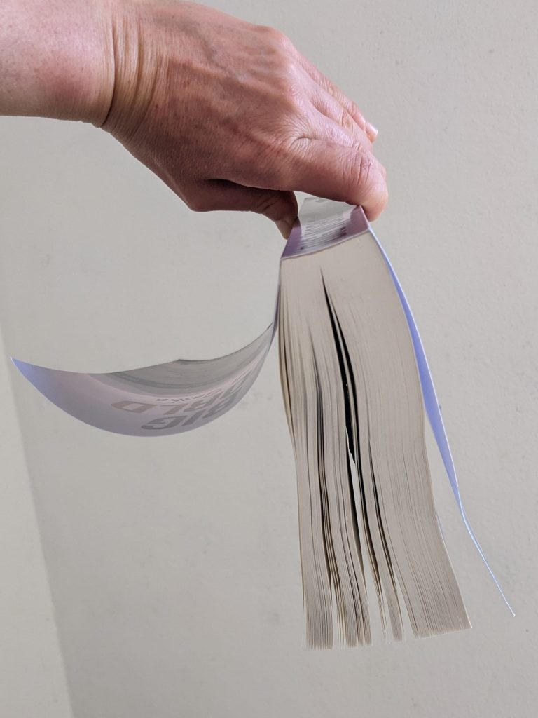 The next proof copy was better. It still came from that Italian printer, but the quality of the paper looked better, there were no more lines, and the cover behaved a bit better too. It still didn’t look nearly as good as that first proof copy from Germany, but it was more or less okay. (And btw I never again received a copy that looked the same as that first proof copy, even after I published my book and ordered it to a friend’s house in Germany. My conspiracy is that Amazon prints your first proof copy from a better quality printer, then the rest of your books come from a cheaper source…)