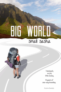 I decided to write it when I got fed up with people saying things like, “Sasha, I wish I could live like you, but I don’t have enough money!” I wanted to explain that I barely ever had much money and that traveling around the world doesn’t require a lot of money. It does, however, require a different kind of lifestyle and world view. I wanted to explain what this lifestyle and world view were all about, so I started writing.
