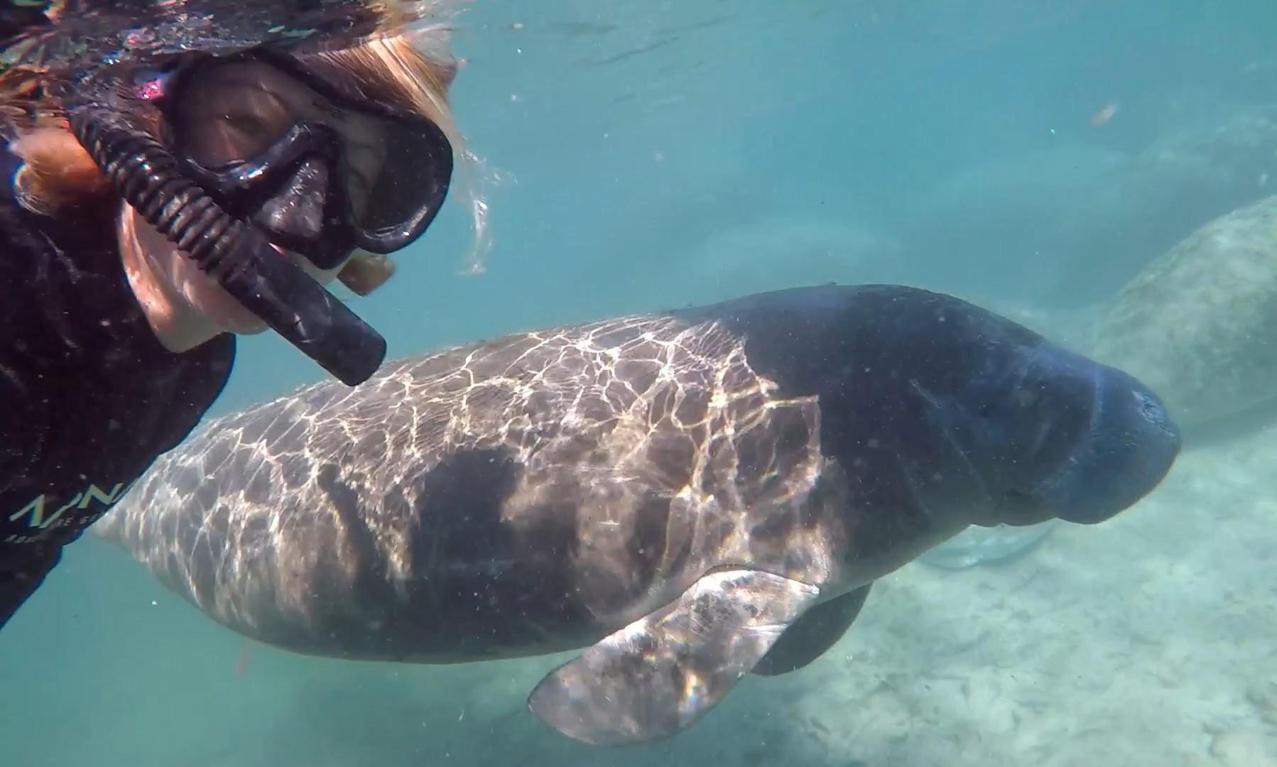 Wow. This was better than I had ever imagined! The water was crystal clear and there were manatees everywhere! Manatees resting, manatees swimming, baby manatees playing around—and then, a young manatee swam right up to my face and nuzzled me! Just like in those documentaries.